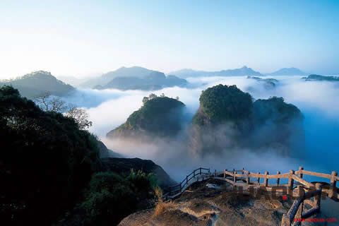 事實上,我們所說的武夷山風景區,一般是指位于武夷山市區西南的小武夷山,它方圓百里,自成一勝,向稱“福建 名山”。武夷山風景區以丹霞地貌為特色,有“三三、六六”之勝。三三九曲溪,全長9.5公里,溪水澄碧清澈,千折縈回,山挾水轉,水繞山行,形成了“曲曲山回轉,峰峰水抱流”的奇觀。