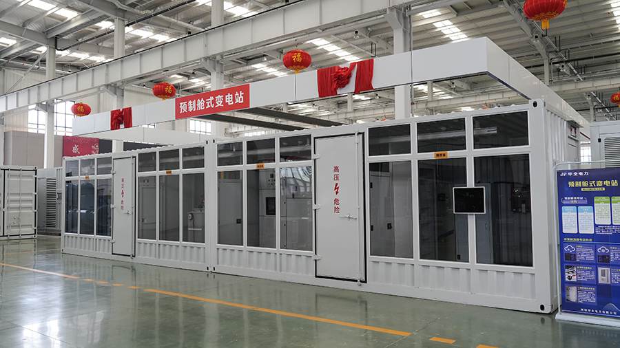 華全電力預(yù)制艙變電站,將主變、高壓配電裝置、中壓配電裝置、二次設(shè)備等預(yù)制在艙內(nèi),主要的設(shè)計(jì)、組裝、配線、調(diào)試等工作都在工廠內(nèi)完成,在現(xiàn)場(chǎng)只需要進(jìn)行拼接安裝即可完工,極大縮減了建設(shè)成本和周期。
