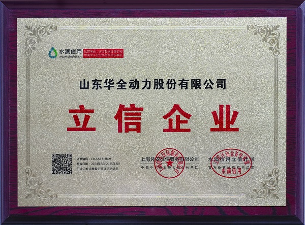 榮譽(yù)的獲得不僅是對華全動(dòng)力綜合實(shí)力的肯定,更是對其誠信經(jīng)營的見證,同時(shí)也為公司未來的生產(chǎn)經(jīng)營提供了更大的助力。