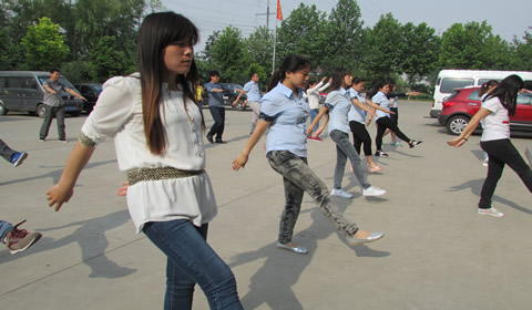 “這么多人一起做廣播體操,可不多見呀!”來辦事的李女士一進(jìn)公司大門,就看到了這令她驚奇又備感親切的一幕。伴著那悠揚(yáng)雄壯的音樂,幾十名華全員工齊刷刷聚集在樓前廣場,統(tǒng)一的著裝、標(biāo)準(zhǔn)的動作、優(yōu)雅的表情、自信的姿態(tài),在綠樹紅花的映襯下顯得如此婀娜而美好。尤其是節(jié)奏歡快時,“啪啪”的擊掌聲音聽起來很是響亮、悅耳。
